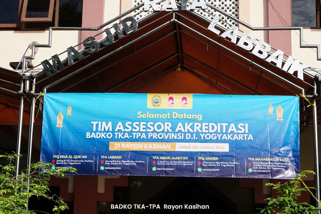Kasihan, Bantul — Ahad, 18 Mei 2025, Badan Koordinasi TPA-TPA (BADKO TPA) Rayon Kasihan bekerjasama dengan Badan Koordinasi TPA-TPA (BADKO TPA) Kabupaten Bantul melaksanakan program akreditasi massal untuk Taman Pendidikan Al-Qur’an (TPA). Kegiatan kali ini digelar di Masjid Labbaik, Sonopakis, Kalurahan Ngestiharjo, Kapanewon Kasihan, mulai pukul 08.00 hingga 11.30 WIB.